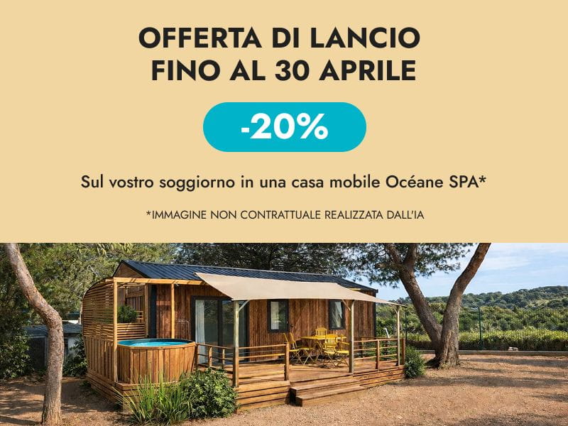 Dal 2026, la nuova casa mobile Océane con spa privata soddisferà anche gli amanti dei momenti di relax dopo una giornata di avventure o di ozio in questa spaziosa casa mobile (40 m²) la cui ampia terrazza (25 m²) renderà ancora più incantevoli le vostre giornate. Gli amanti del campeggio tradizionale potranno usufruire di piazzole ombreggiate per tende, roulotte e camper, che offrono la libertà della vita all’aria aperta con i servizi di una struttura a 4 stelle.