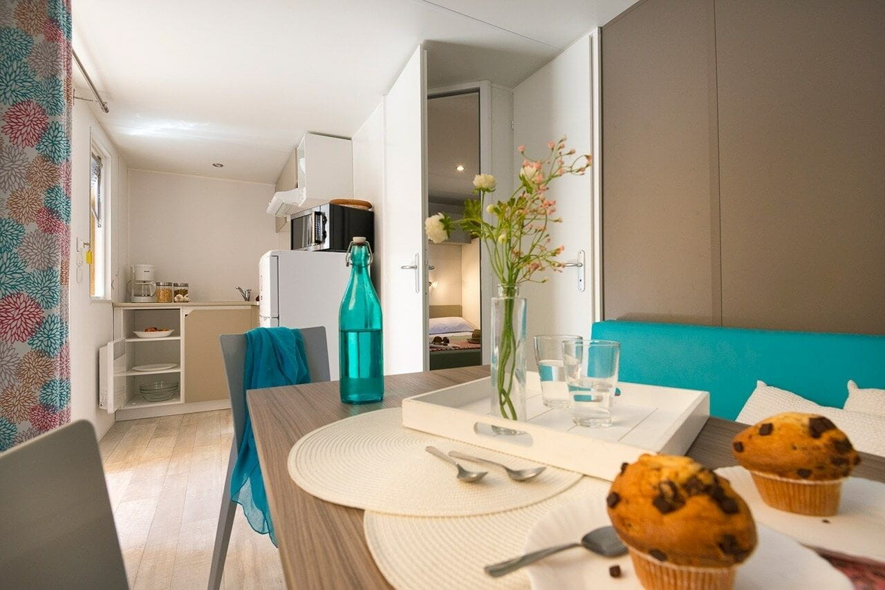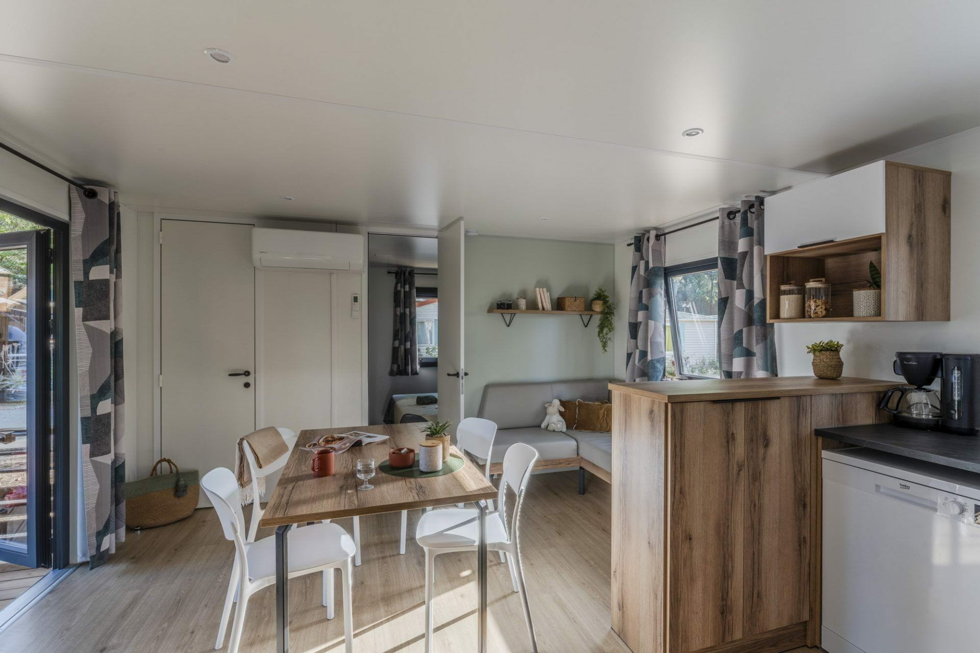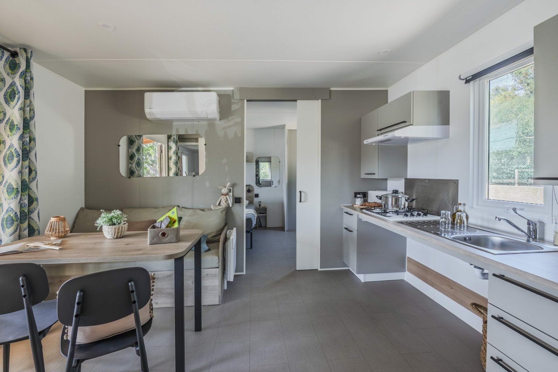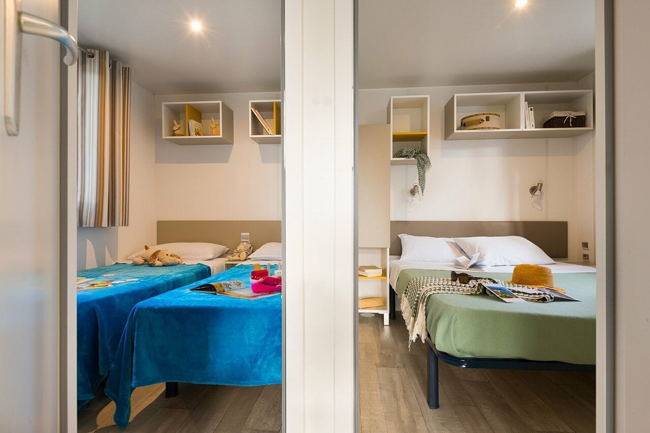 A seconda del modello, potrete usufruire di dotazioni aggiuntive come lavastoviglie, diverse camere separate, numerosi spazi di stoccaggio o alloggi adatti a persone con mobilità ridotta. Ogni alloggio è stato progettato per offrirvi uno spazio di vita piacevole e accogliente, perfetto per ricaricare le energie dopo una giornata trascorsa in mare, tra attività o relax a bordo piscina.