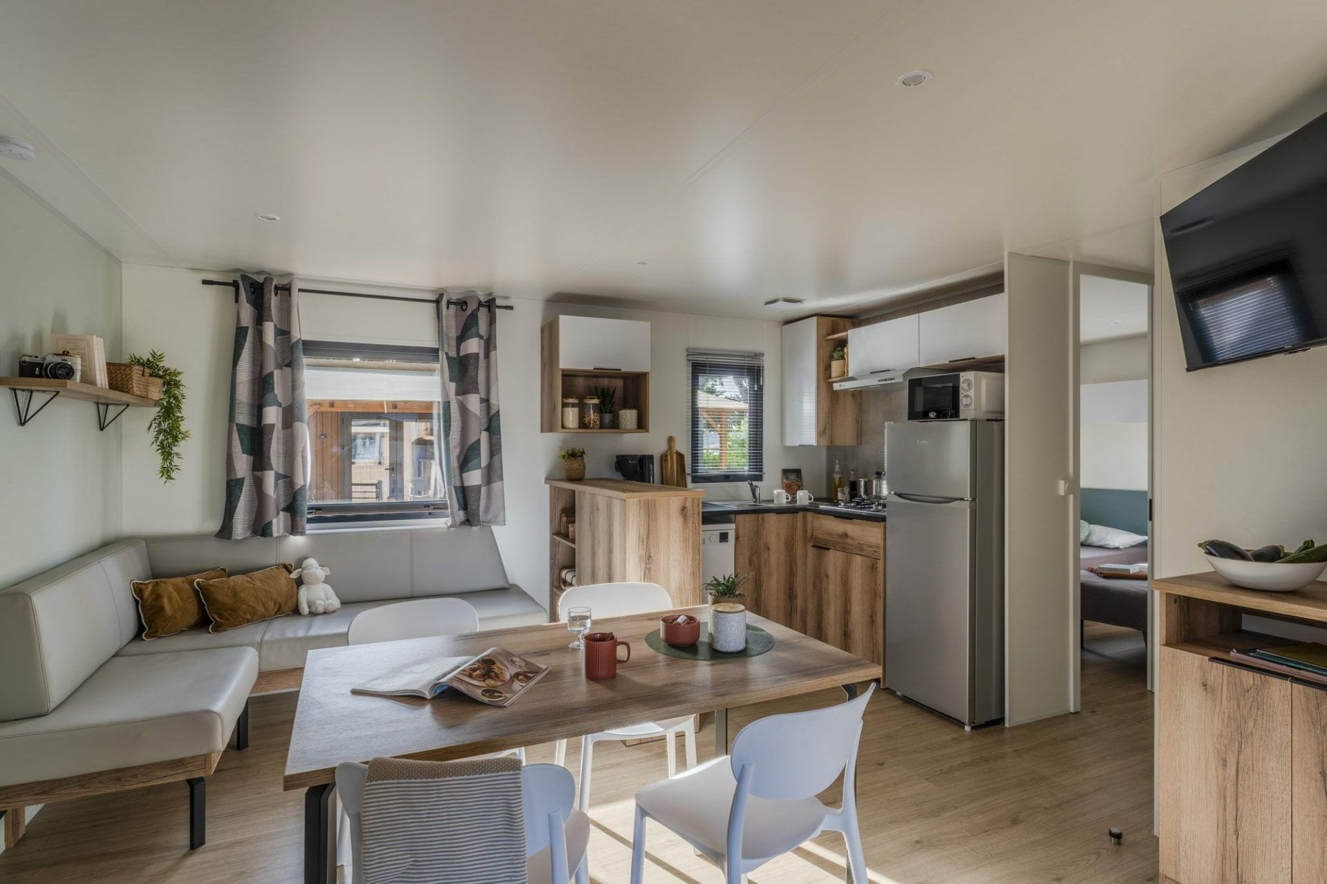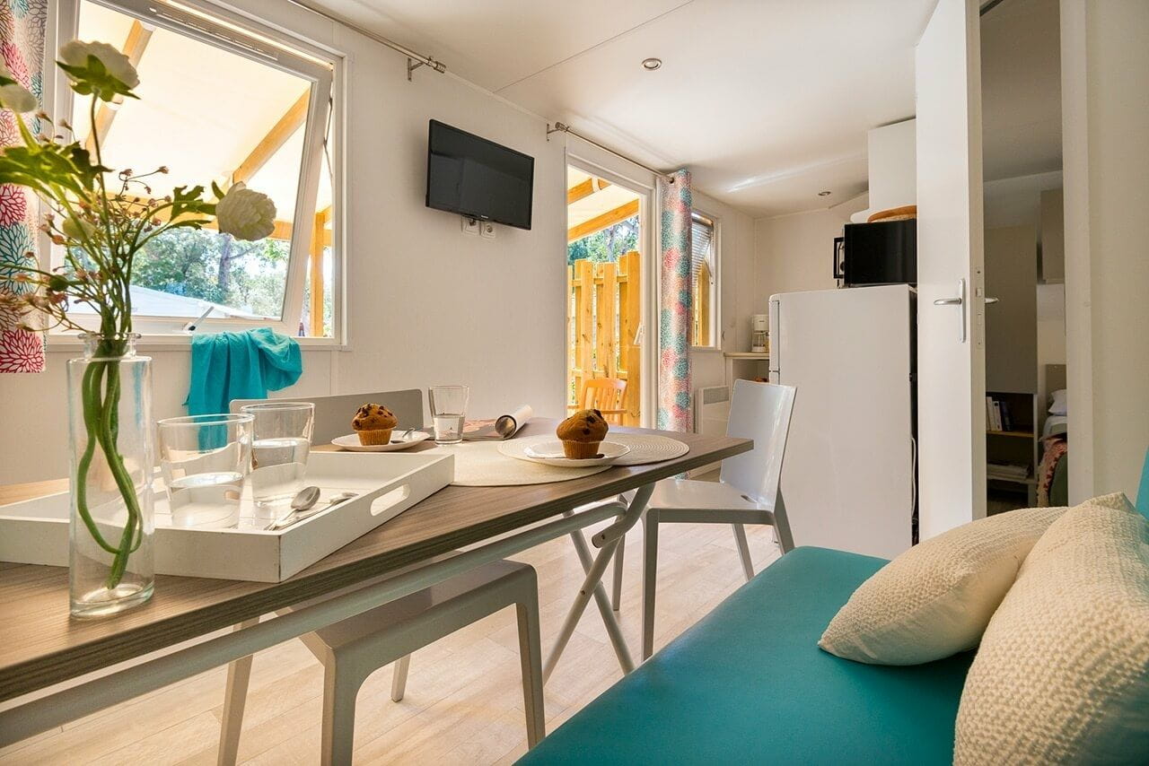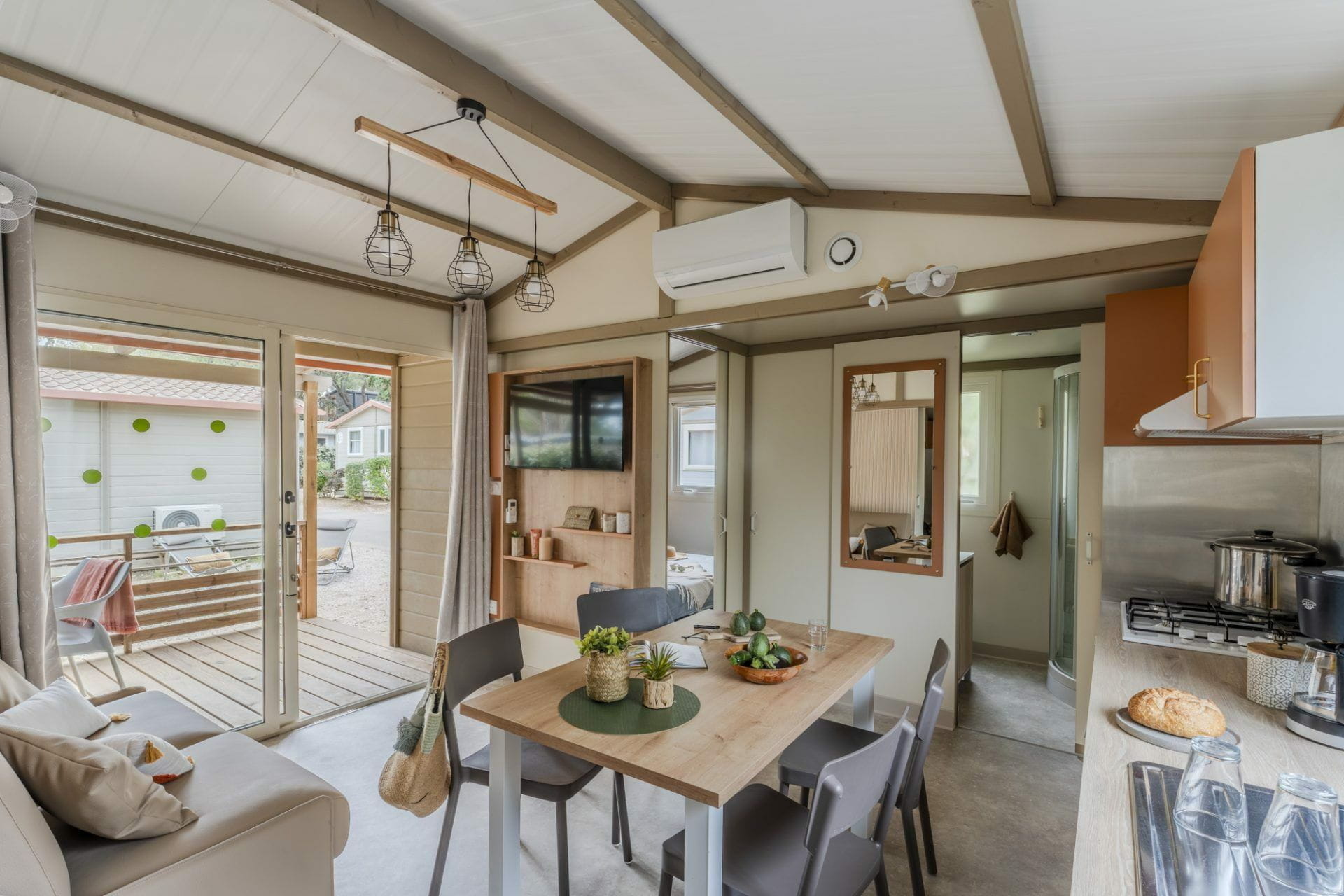 A seconda del modello, potrete usufruire di dotazioni aggiuntive come lavastoviglie, diverse camere separate, numerosi spazi di stoccaggio o alloggi adatti a persone con mobilità ridotta. Ogni alloggio è stato progettato per offrirvi uno spazio di vita piacevole e accogliente, perfetto per ricaricare le energie dopo una giornata trascorsa in mare, tra attività o relax a bordo piscina.