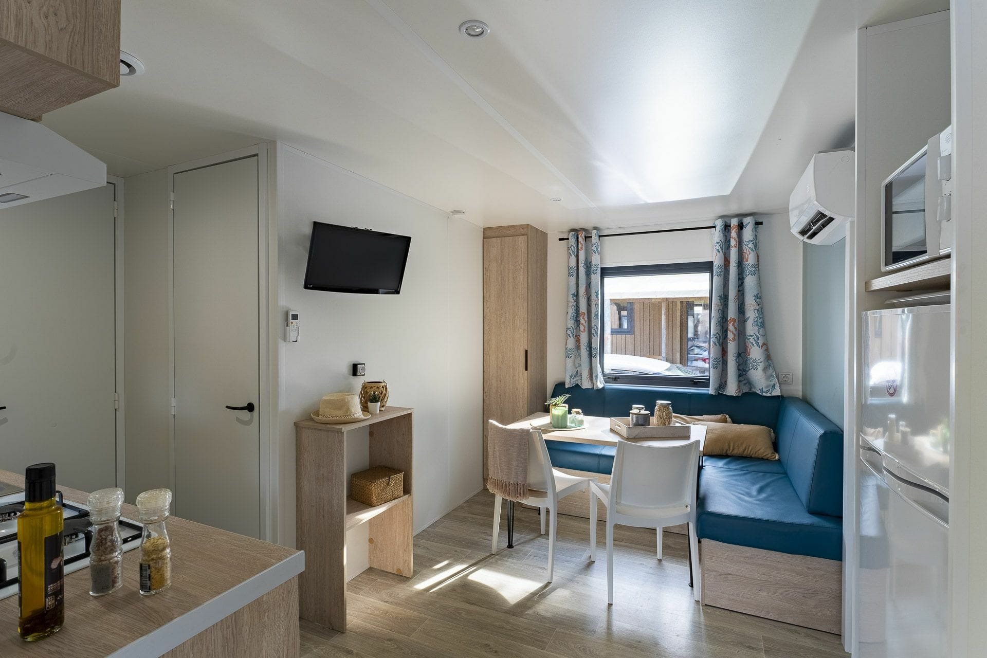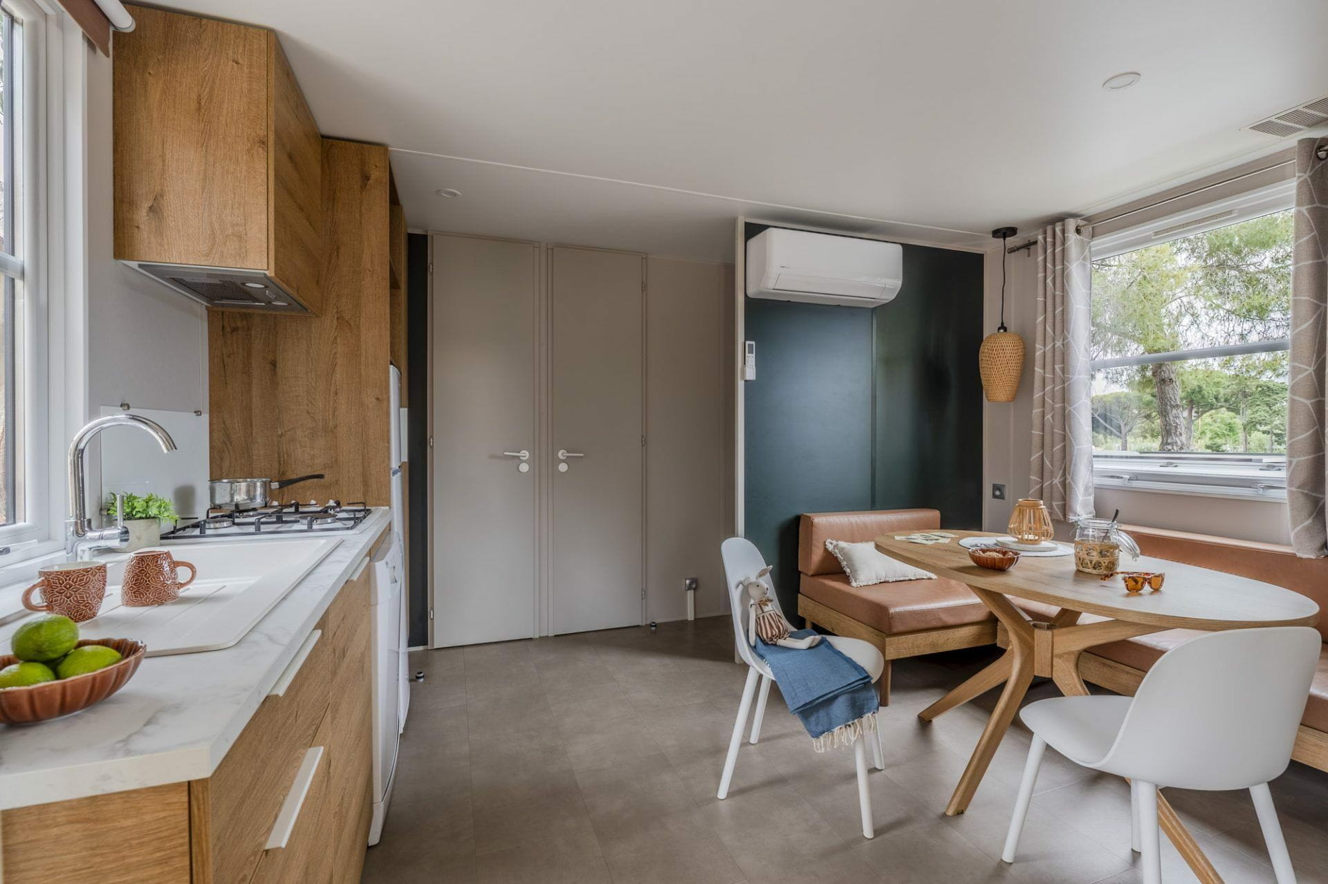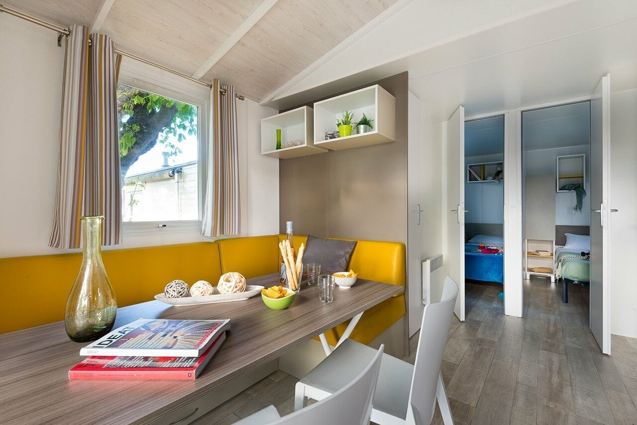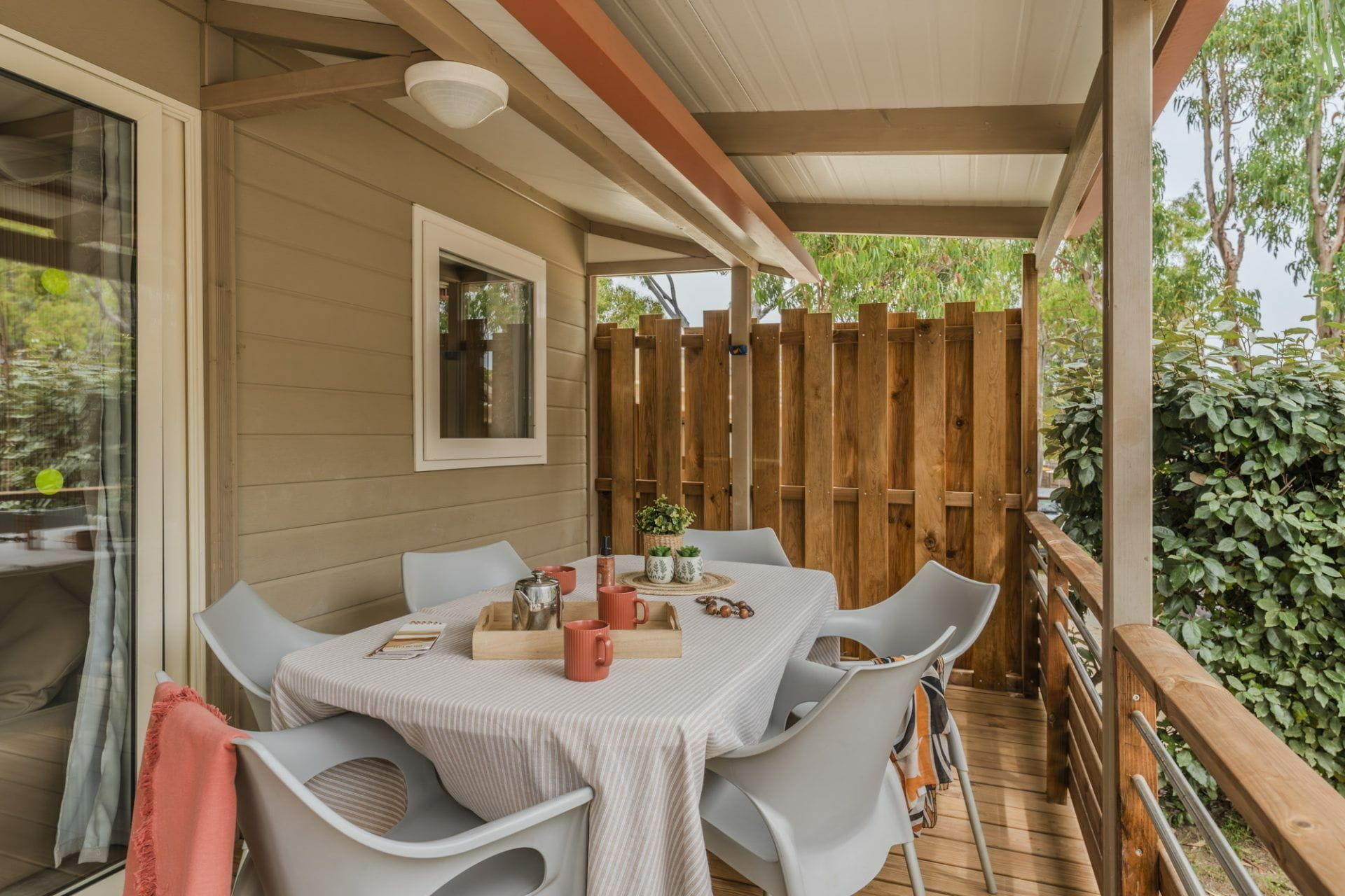 A seconda del modello, potrete usufruire di dotazioni aggiuntive come lavastoviglie, diverse camere separate, numerosi spazi di stoccaggio o alloggi adatti a persone con mobilità ridotta. Ogni alloggio è stato progettato per offrirvi uno spazio di vita piacevole e accogliente, perfetto per ricaricare le energie dopo una giornata trascorsa in mare, tra attività o relax a bordo piscina.